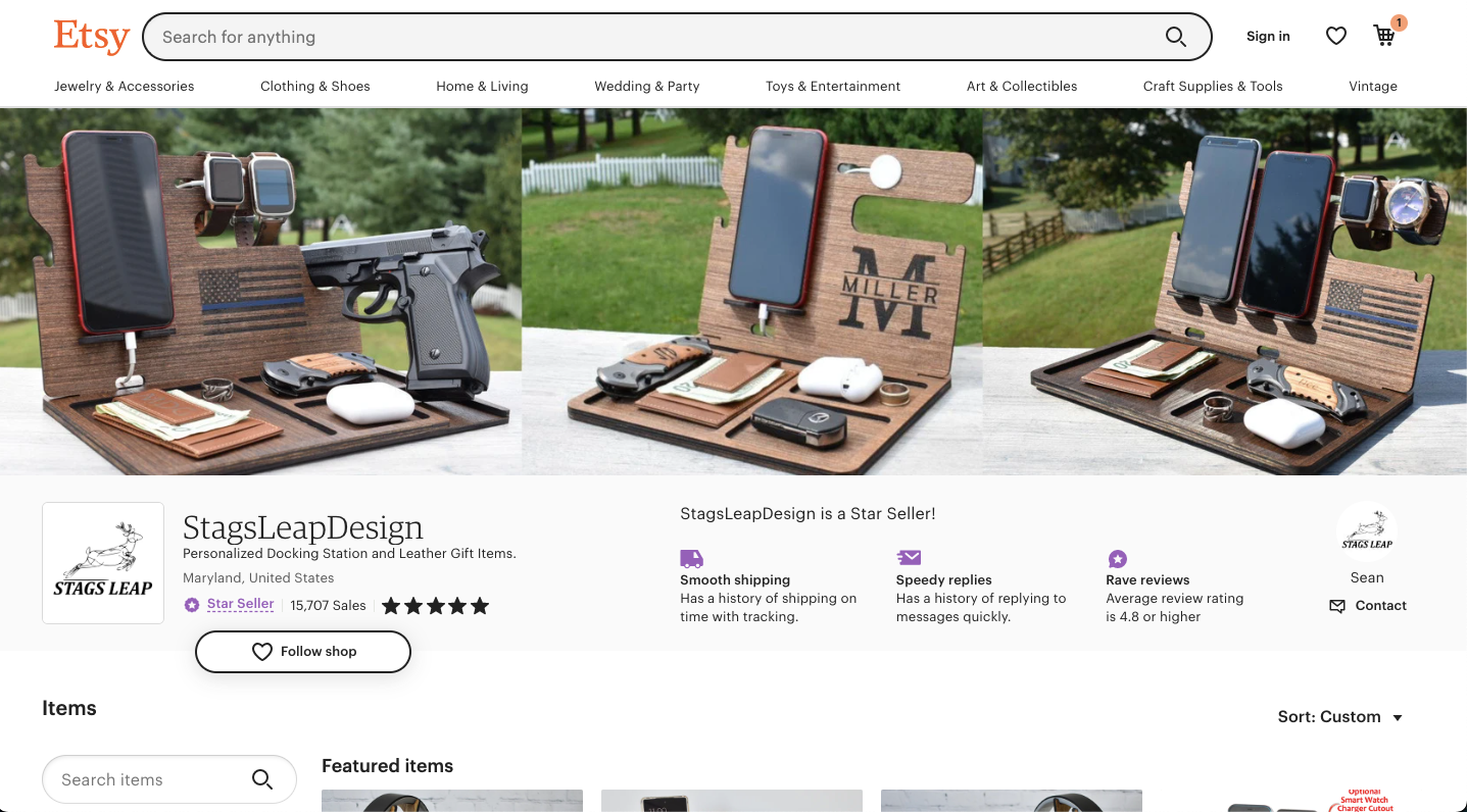 We are thrilled to announce that we have merged our four successful Etsy shops into one. Our store offers a wide range of products to choose from, including personalized smartphone stands, headphones and controller stands, leather wallets, cutting boards, knives and more.