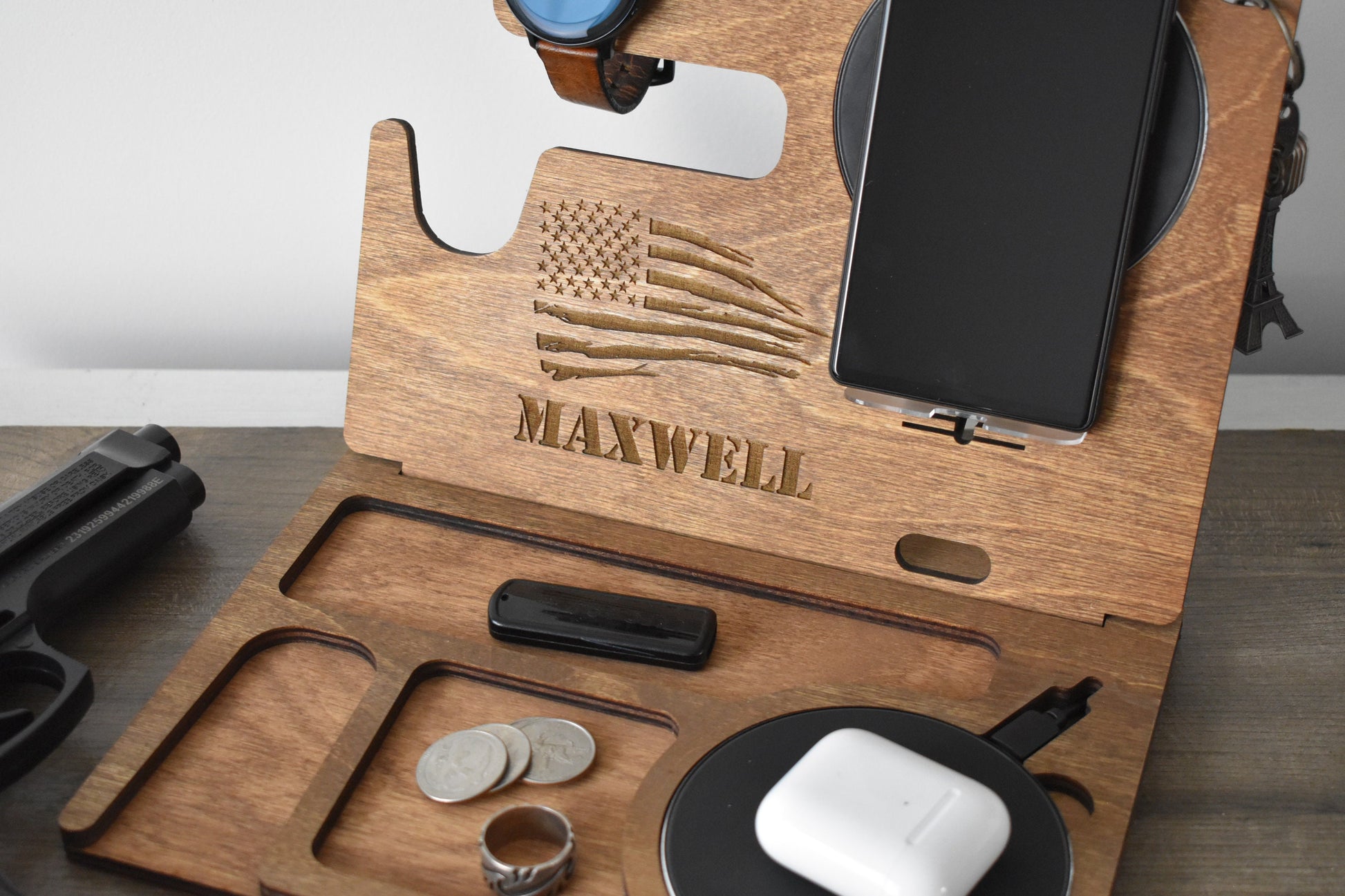 Groomsmen Gift, Groom Gift, Wood docking station, catch them all, caddy, desk organizer, wooden docking station, docking station, nightstand docking station, dock, docking, phone docking, gift for him. gift for her, gift for men, gift for father, gift for dad, gift for mom, gift for mother, gift for boyfriend, gift for girlfriend, anniversary gift, birthday gift, valentines day gift, fathers day gift, mothers day gift, retirement gift. teachers day gift, gift for teacher, graduation gift, fast wireless charger.