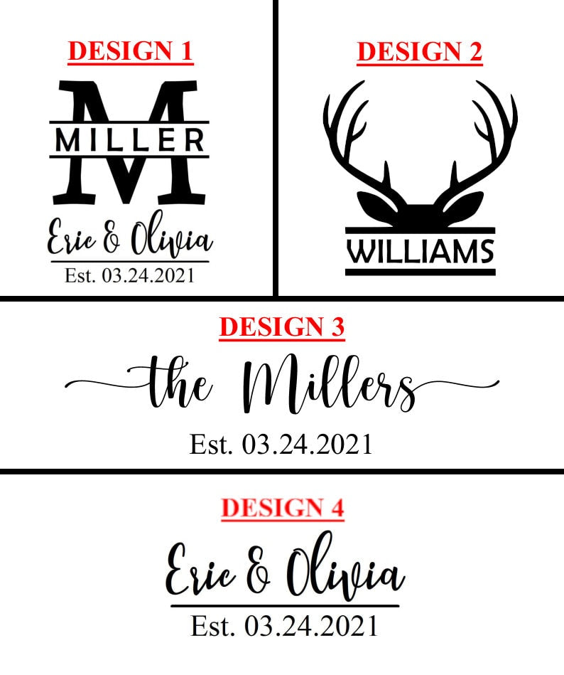 2. CHOOSE THE DESIGN - Please see available design options from the listing pictures. Please provide all information for the design that you chose in the "Add your personalization" box. Add to cart and complete checkout.