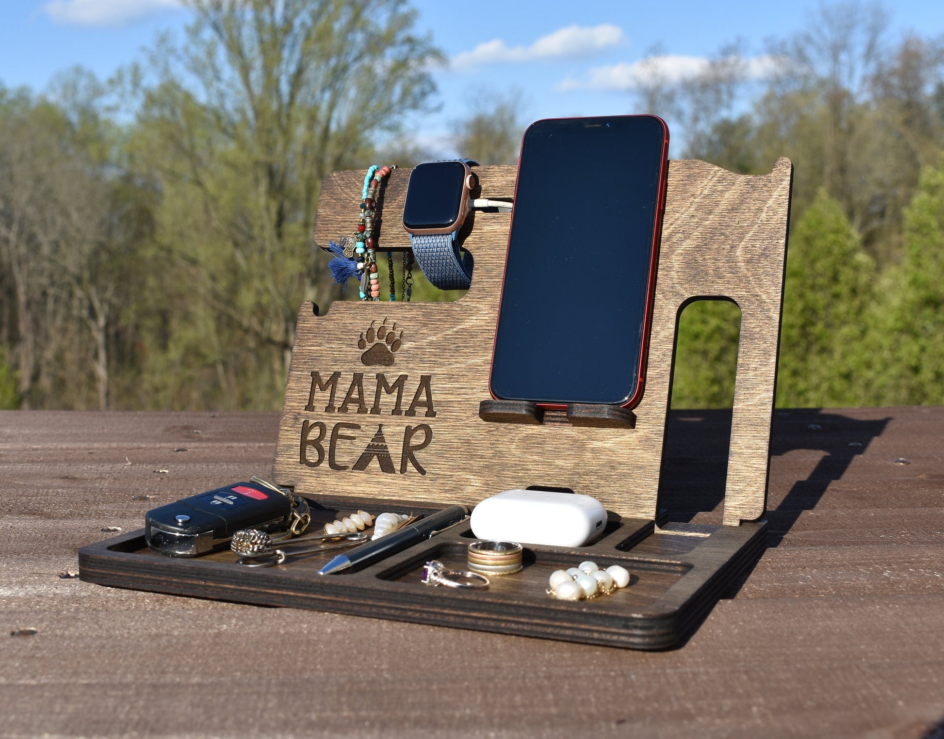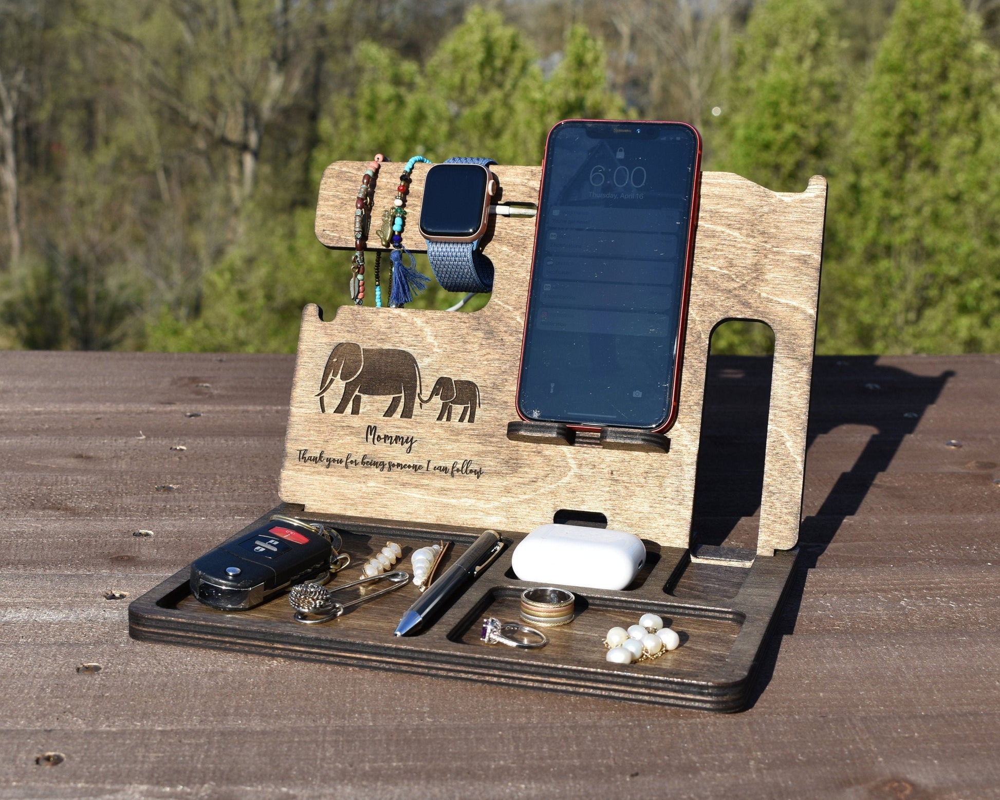Mother's Day Gift, wooden docking station is a great gift option for holidays and any other special events. Our design is unique and functional. It has two wooden pieces which you will need to insert them into each other.
