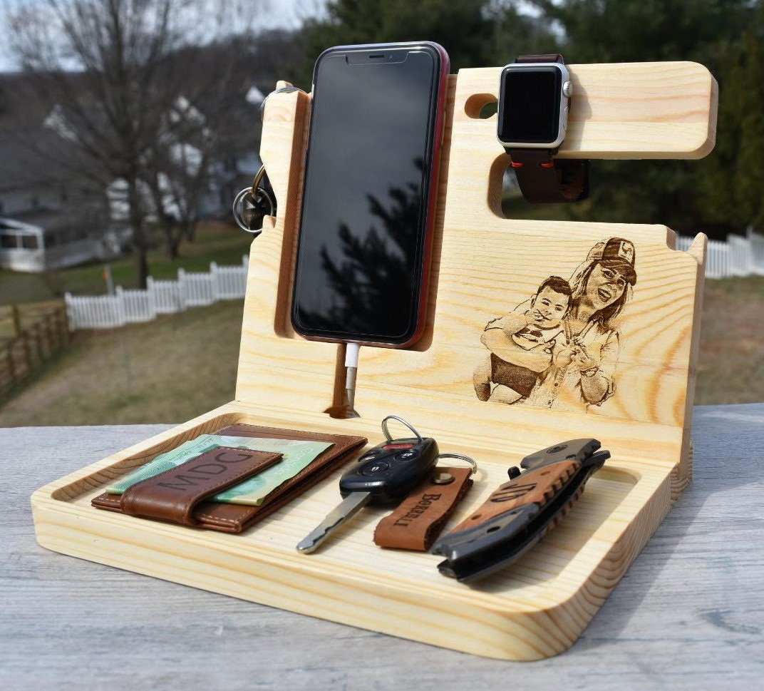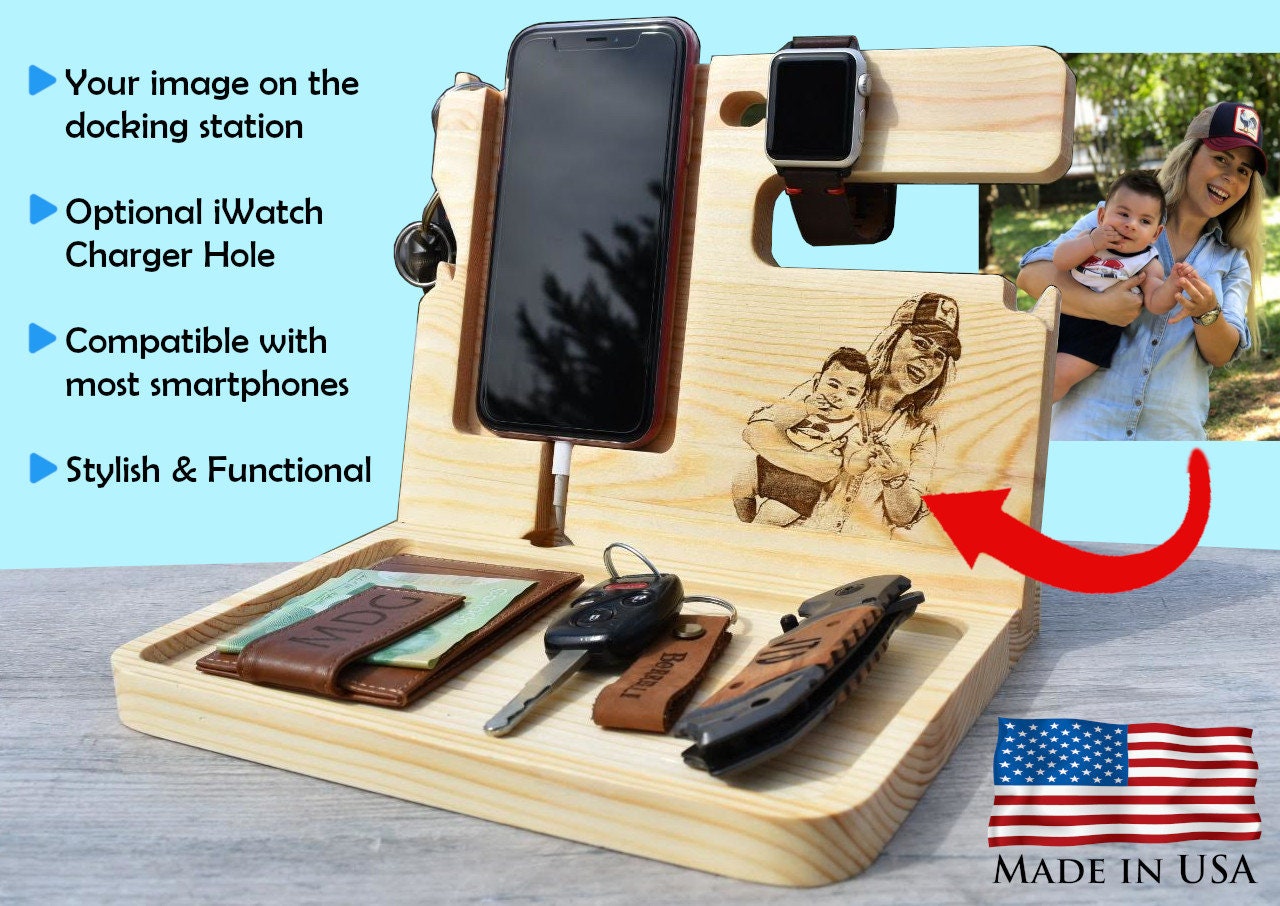 Personalized Docking Station is a perfect original handmade gift for men and women, father, mother brother, sister, grandparents, girlfriend and boyfriend, perfect for a nightstand, dresser or end table.