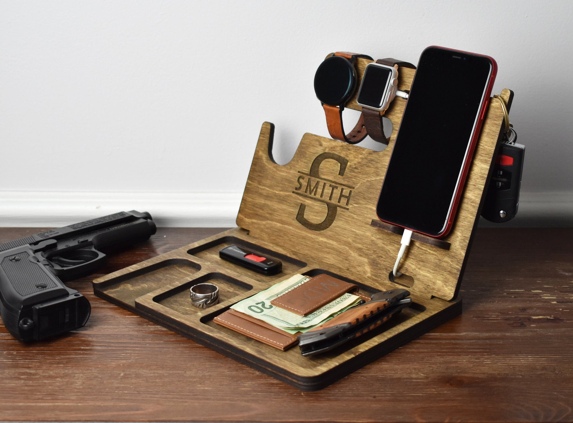 Personalized Docking Station is a perfect original handmade gift for men and women, father, mother brother, sister, grandparents, girlfriend and boyfriend, perfect for a nightstand, dresser or end table.