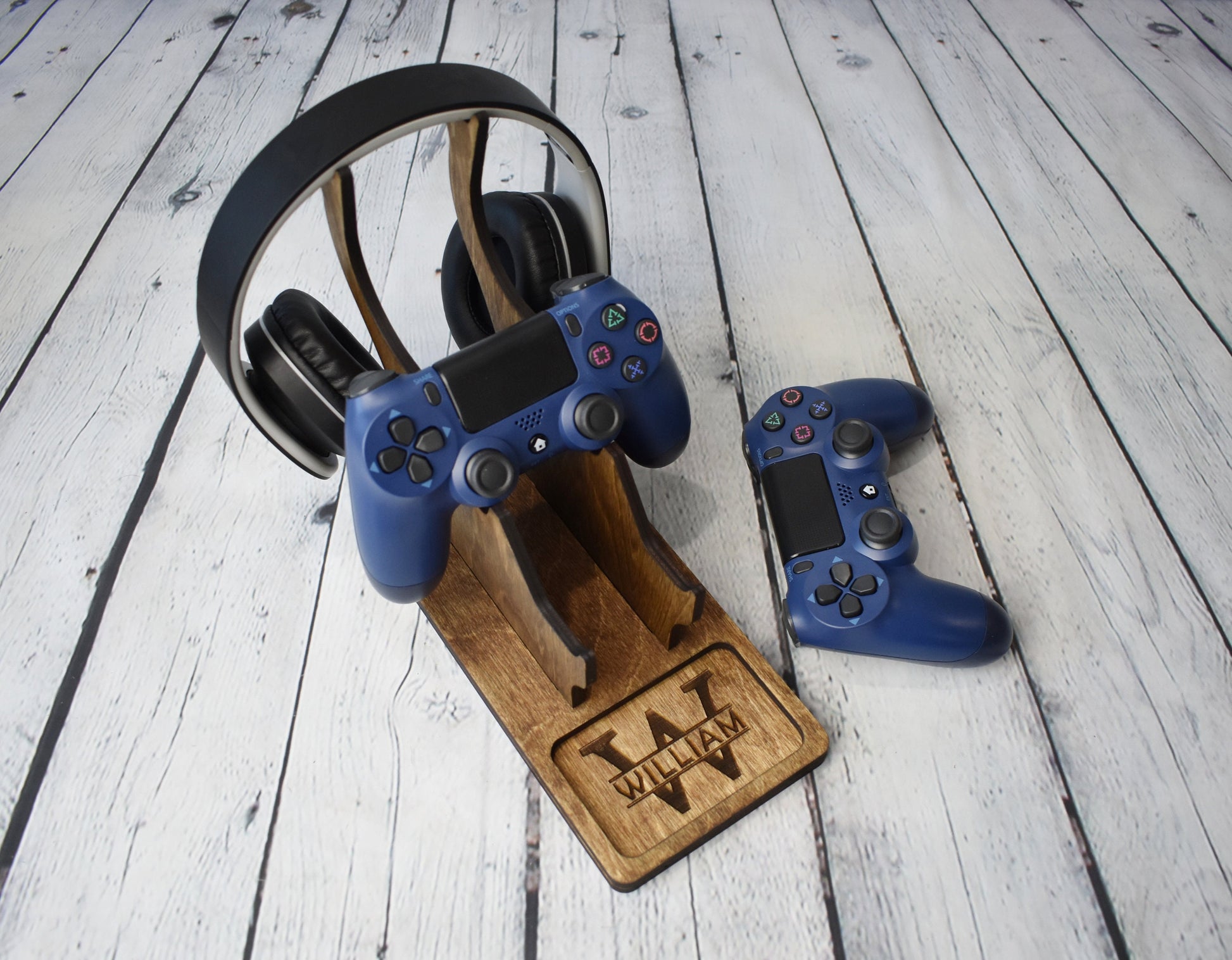 Keywords: Personalized PS5 and Xbox Controller and Headphone Stand, Graduation Gift for Him, Gamer Room Decor, Headset Stand, Boyfriend Gift.